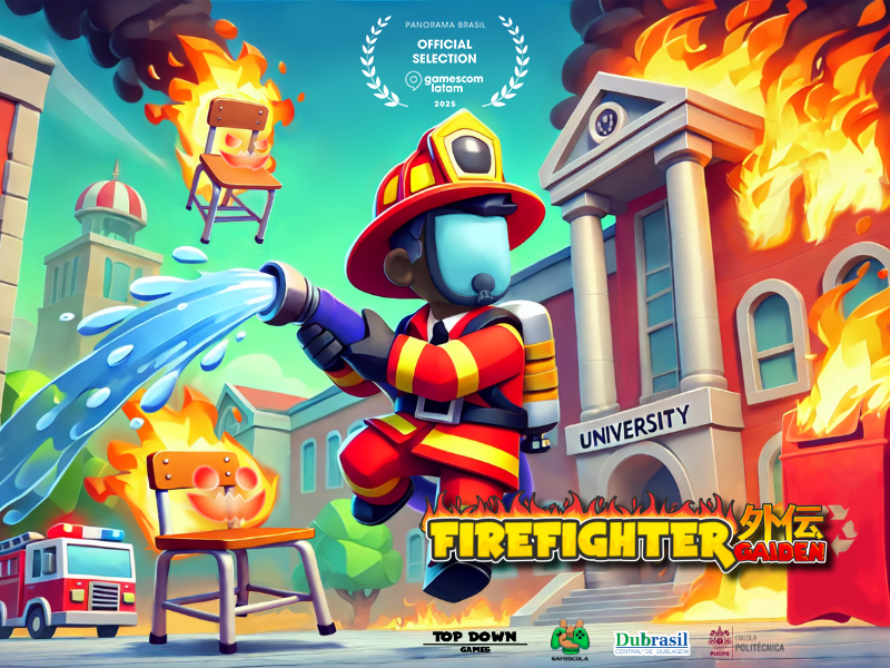 A gamescom Latam 2025, realizada em São Paulo de 30 de abril a 4 de maio, foi palco de grandes revelações do mundo dos games. A GAMEscola marcou presença com seu segundo jogo comercial, Firefighter Gaiden, que já está disponível na STEAM para ser adicionado à Wishlist dos jogadores. Firefighter Gaiden no Panorama Brasil: Reconhecimento entre os melhores Um dos sete selecionados na categoria estudante do Panorama Brasil, Firefighter Gaiden se destacou entre mais de 700 inscritos, consolidando o talento do estúdio Top Down Games, fundado pelos irmãos Freddy e Lily, ex-alunos da GAMEscola. Durante os cinco dias de evento, o jogo recebeu feedbacks valiosos do público e conquistou a atenção de especialistas e visitantes ilustres. Firefighter Gaiden recebeu ótimas análises em redes sociais e sites especializados O jogo ganhou destaque na gamescom Latam, recebendo excelentes análises no Instagram e em portais especializados, que elogiaram sua proposta inovadora de metroidvania 3D, combinando exploração e combate contra incêndios em um ambiente universitário. Além disso, a equipe da GAMEscola participou do Podcast No Ar, com a presença de André Leandro, CEO da GAMEscola, e Freddy Gonçalves, da Top Down Games, onde compartilharam detalhes sobre o desenvolvimento e o futuro lançamento do game. Firefighter Gaiden: Prepare-se para o lançamento em 2026! Com apoio da Dubrasil Central de Dublagem e da PUCPR, Firefighter Gaiden está previsto para lançamento em 2026, prometendo uma experiência envolvente e inovadora para os jogadores. 🔥 Adicione Firefighter Gaiden à sua Wishlist na STEAM e acompanhe todas as novidades! 🚀