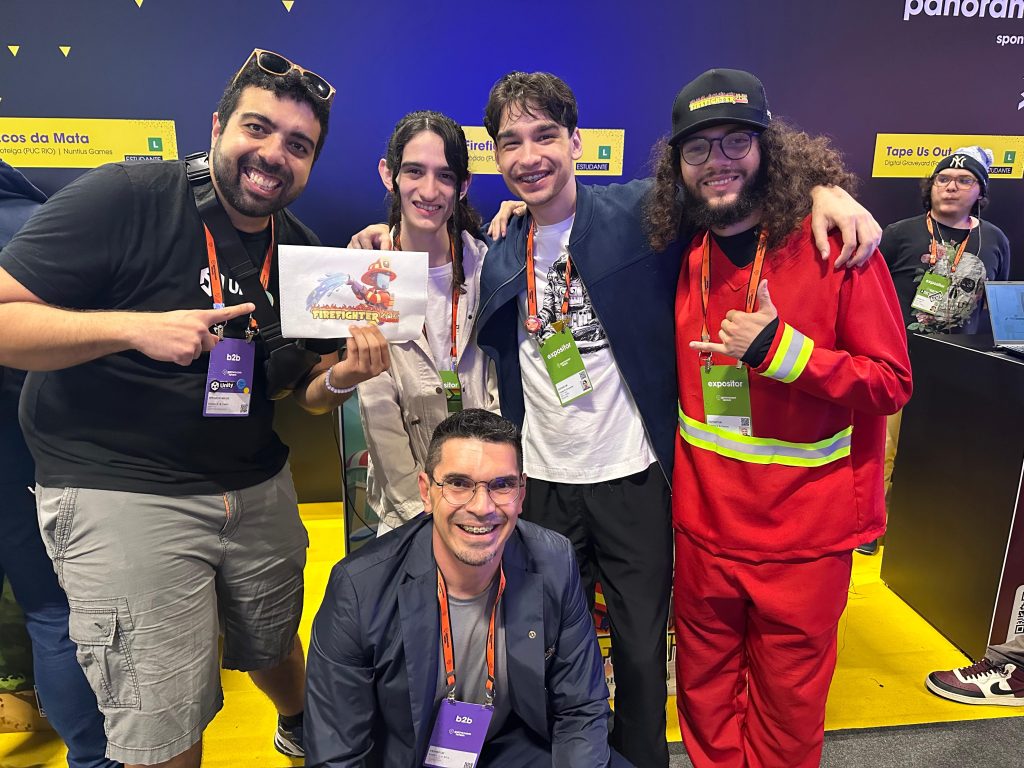 Um dos sete selecionados na categoria estudante do Panorama Brasil, Firefighter Gaiden se destacou entre mais de 700 inscritos, consolidando o talento do estúdio Top Down Games, fundado pelos irmãos Freddy e Lily, ex-alunos da GAMEscola. Durante os cinco dias de evento, o jogo recebeu feedbacks valiosos do público e conquistou a atenção de especialistas e visitantes ilustres.